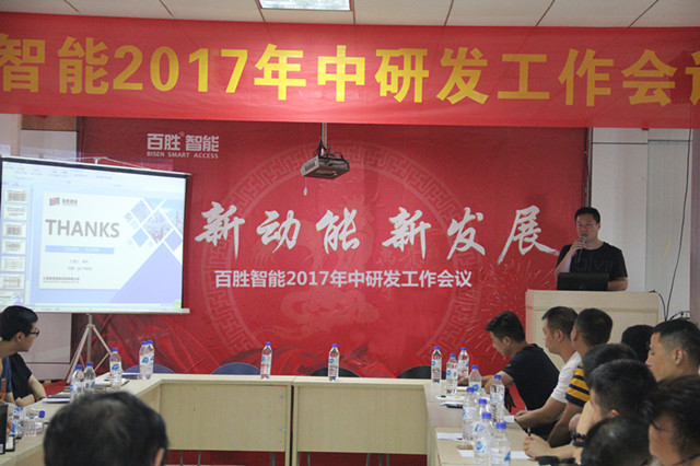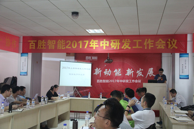 2017年8月7日,“百勝智能2017年中研發(fā)工作會議”在百勝智能總部隆重召開。百勝智能董事長劉潤根先生、董事長助理劉子堯先生、艾視特總經(jīng)理劉小超先生、百勝智能總經(jīng)理助理黃永恒、采購總監(jiān)熊祥,百勝及聯(lián)勝研發(fā)部、銷售部、品質(zhì)部、工藝部負(fù)責(zé)人,及百勝智能、聯(lián)勝智能全體工程師(60余人),9個營銷中心、辦事處負(fù)責(zé)人共同出席會議!