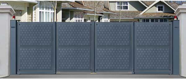 河源懸浮折疊門具有美觀大方、樣式新穎、花色多樣等特點為河源恒大濱江左岸別墅大門口增加色彩。