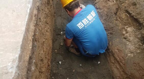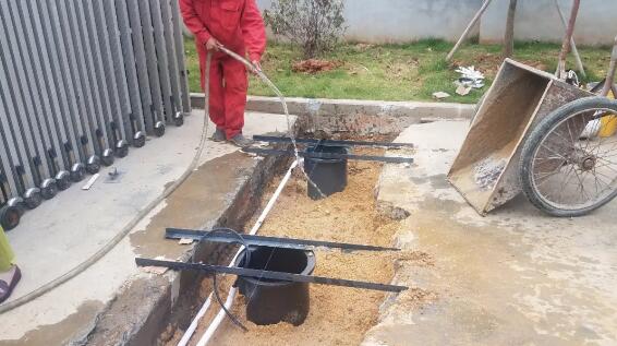 回填砂石,回填至距離地面30cm左右,澆水沉降2小時(shí)候后夯實(shí)。