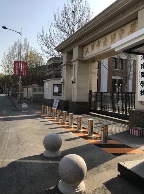 南開中學(xué)所有的校園出入口都配備升降地柱守護,有效防范車輛沖撞事故的發(fā)生。