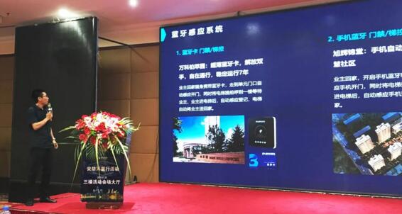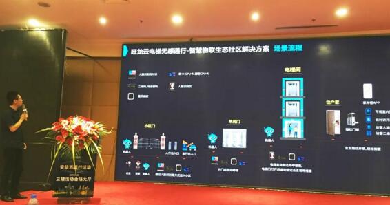 會議上,張鵬先生為大家重點分享了旺龍藍牙--無感通行方案:用戶回家隨身攜帶藍牙卡或打開手機APP,走到單元門口自動感應(yīng)開門,同時將電梯提前呼到一樓等待用戶,用戶進入電梯后,自動感應(yīng)登記,電梯自動將用戶送達目的地樓層。這就意味著用戶從進入小區(qū)到回到家中,全程解放雙手,自在通行。