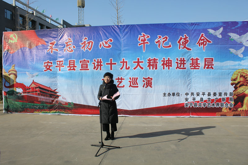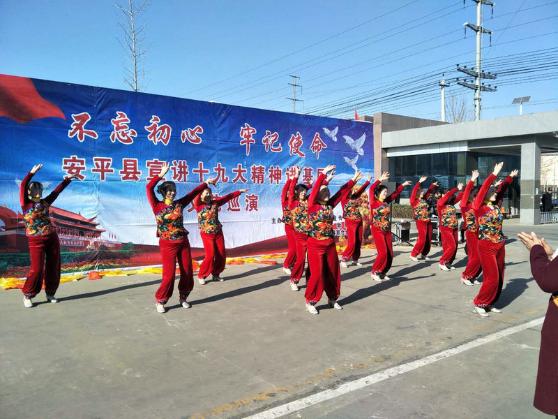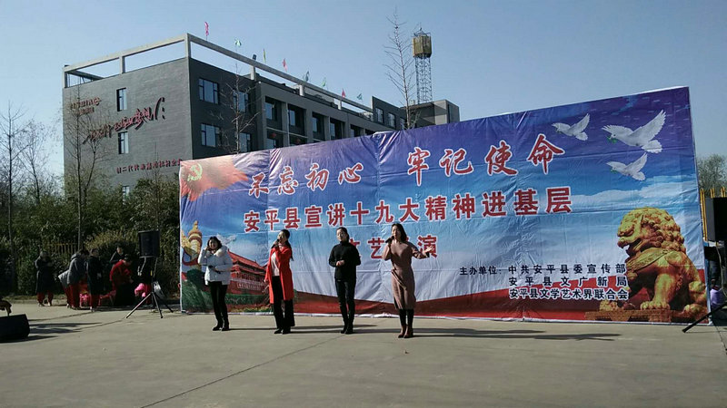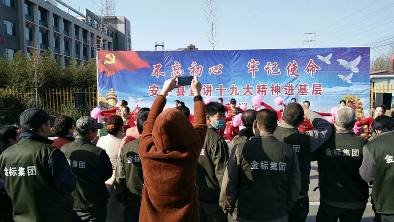 11月23日上午,由縣委宣傳部、縣文廣新局、縣文聯(lián)、金標(biāo)集團(tuán)聯(lián)合舉辦的“不忘初心 牢記使命 安平縣宣講十九大精神進(jìn)基層”文藝巡演第三站走進(jìn)了河北金標(biāo)建材科技股份有限公司,通過(guò)歌曲、快板、舞蹈等群眾喜聞樂(lè)見(jiàn)的形式把黨的十九大精神送到群眾身邊。