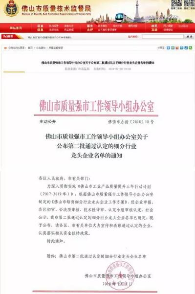 近日,佛山市質(zhì)量強(qiáng)市工作領(lǐng)導(dǎo)小組辦公室公示了“細(xì)分行業(yè)龍頭企業(yè)”入選名單。這是佛山金鴻星智能科技有限公司繼“國(guó)家高新技術(shù)企業(yè)”、“廣東省守合同重信用企業(yè)”之后獲得的又一項(xiàng)重大榮譽(yù)!