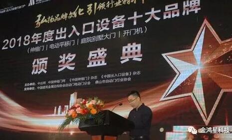 2019年3月3日,備受關注的“2018年度中國伸縮門、電動平移門、庭院別墅大門、開門機十大品牌頒獎典禮暨新零售戰(zhàn)略合作簽約儀式”在廣東省佛山羅村尖沙咀大酒店隆重舉行,佛山金鴻星智能科技有限公司(以受邀參加會議),與業(yè)界精英共聚佛山,謀劃行業(yè)盛世。