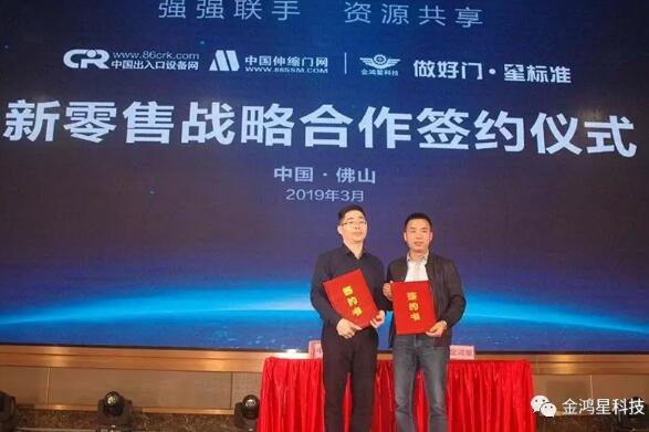 珍惜榮譽,繼續(xù)前行,擁抱新零售,共同布局新未來,時代的發(fā)展變化很快,我們要順應時代發(fā)展趨勢,主動擁抱新零售模式,整合生態(tài)資源合作,線上線下一體化的新零售是電動門行業(yè)的發(fā)展趨勢,“佛山金鴻星智能科技有限公司”與“中出網(wǎng)&中國伸縮門網(wǎng)”簽署新零售戰(zhàn)略合作協(xié)議,通過強強聯(lián)手、資源共享加快新零售戰(zhàn)略轉(zhuǎn)型的實施步伐,為用戶開啟線上線下融合的一站式服務新篇章。