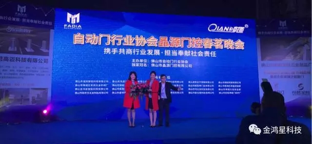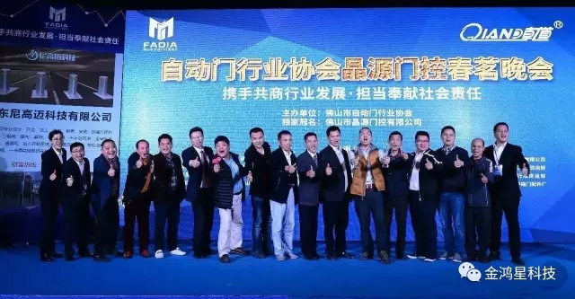 2017年3月15日第二屆全體全員大會暨春茗晚會活動在晶源門控有限公司隆重舉行,市工商聯(lián)、市科技局等單位領(lǐng)導、全體協(xié)會會員及來賓共400余人參加活動。 晚會在激越的鑼鼓和醒獅表演中開場,會上協(xié)會各領(lǐng)導發(fā)表講話并提出了行業(yè)發(fā)展新思路、更好的發(fā)揮協(xié)會職能,在嚴峻的經(jīng)濟形勢下,為企業(yè)樹立信心,抱團發(fā)展。攜手共商行業(yè)發(fā)展,擔當奉獻社會責任,不斷提升社會的凝集力和影響力,特任命金鴻星伸縮門業(yè)董事長金國建先生與佛山市南海鷹峰五金制品有限公司羅福林董事長為自動門行業(yè)協(xié)會執(zhí)行會長。