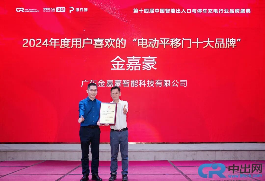 祝賀廣東金嘉豪智能科技有限公司再次斬獲2024年度伸縮門及電動平移門“十大品牌”稱號!