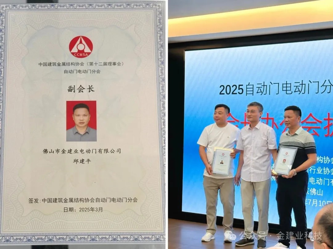 會議由中國建筑金屬結構協(xié)會自動門電動門分會主辦,佛山市自動門行業(yè)協(xié)會協(xié)辦,金建業(yè)全程承辦。來自行業(yè)協(xié)會的領導、會長單位代表及企業(yè)齊聚一堂,圍繞戶外門業(yè)技術創(chuàng)新、市場拓展、標準建設等核心議題深入交流。金建業(yè)董事長邱建平,新任中建金協(xié)自動門電動門協(xié)會副會長 ,與行業(yè)“大佬”們并肩研討,以開放共享的姿態(tài),為戶外門業(yè)發(fā)展注入新動能。