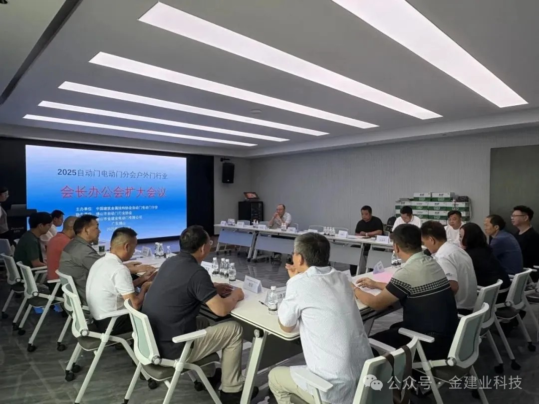 2025年7月10日,2025自動門電動門分會戶外門行業(yè)會長辦公會擴大會議在佛山金建業(yè)電動門有限公司成功舉辦。 自動門電動門分會副會長戴建國、自動門電動門分會副會長劉軍、自動門電動門分會執(zhí)行會長王穎和陳標明、佛山市自動門行業(yè)協(xié)會會長羅明輝等參與本次會議。作為承辦單位,金建業(yè)攜手行業(yè)同仁,聚焦戶外門業(yè)新趨勢,共探高質量發(fā)展路徑。