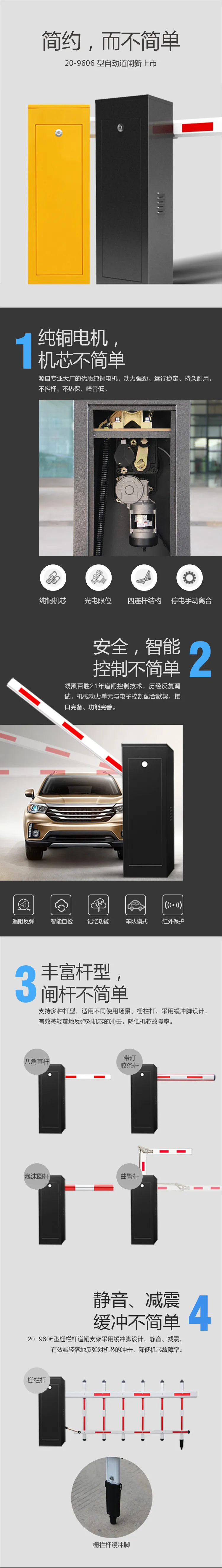 20-9606型道閘是一款主打性價比的爆款產(chǎn)品,設計簡約、外形低調(diào),符合大眾審美;