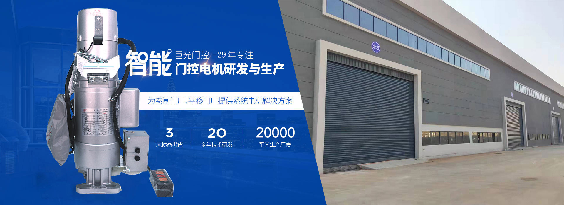 中山巨光智能門控有限公司前身是巨光-東元溫控門有限公司、建于1996年系臺灣獨資企業(yè),目前坐落于中山小欖工業(yè)生產(chǎn)基地。2010年擴大規(guī)模生產(chǎn),建筑面積約2萬多平方米。主要引進美國、德國等門控技術(shù),擁有多項國家專利,致力于電動卷門機、平移門機、平開門機、快速門機、遙控器的研發(fā)、生產(chǎn)及銷售,是行業(yè)的有名品牌之一。