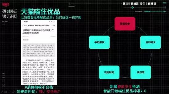 此次天貓智能門鎖新標(biāo)準(zhǔn)的發(fā)布,牽頭制定高于國標(biāo)的嚴苛行業(yè)標(biāo)準(zhǔn),引入第三方機構(gòu)抽檢機制,從“誤識率、手動部件強度、耐久性、智能安全”4個標(biāo)準(zhǔn)進行檢測,對符合新標(biāo)準(zhǔn)的產(chǎn)品打標(biāo)“喵住”,讓消費者可以一目了然的選擇到安全優(yōu)質(zhì)的智能鎖產(chǎn)品。未來,消費者在手淘、天貓App上搜索“喵住”,即可挑選符合新標(biāo)準(zhǔn)的指紋鎖。