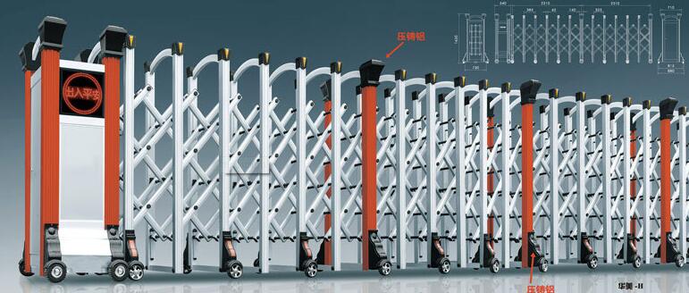 六盤水伸縮門就是門體可以伸縮自由移動(dòng),來控制門洞大小、來控制行人或車輛的攔截和放行的一種門。伸縮門主要由門體、驅(qū)動(dòng)電機(jī),滑道、控制系統(tǒng)構(gòu)成。門體采用優(yōu)質(zhì)不銹鋼及鋁合金專用型材制作,采用平行四邊形原理鉸接,伸縮靈活行程大。驅(qū)動(dòng)器采用特種電機(jī)驅(qū)動(dòng),蝸桿蝸輪減速,并設(shè)有自動(dòng)離合或手動(dòng)離合器,自動(dòng)離合停電時(shí)可自動(dòng)啟閉,手動(dòng)離合停電時(shí)可手動(dòng)啟閉,控制系統(tǒng)有控制板,按鈕開關(guān),另可根據(jù)需求配備無線遙控裝置。
