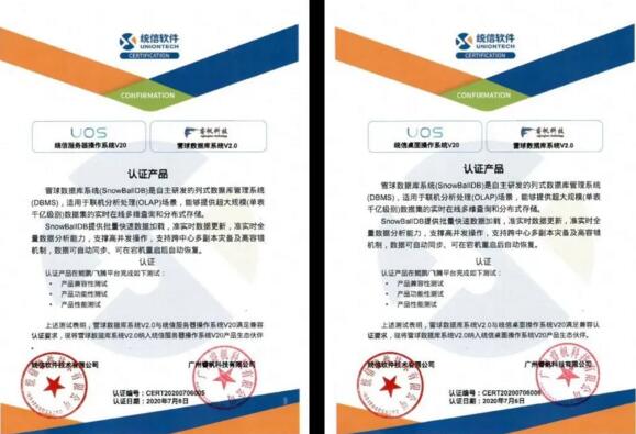 為了響應(yīng)國(guó)家信息技術(shù)應(yīng)用技術(shù)創(chuàng)新的號(hào)召,佳都科技參股公司廣州睿帆科技有限公司與統(tǒng)信軟件技術(shù)有限公司共同完成了關(guān)于睿帆科技自主研發(fā)核心數(shù)據(jù)庫(kù)產(chǎn)品雪球數(shù)據(jù)庫(kù)系統(tǒng)V2.0與統(tǒng)信服務(wù)器操作系統(tǒng)V20、統(tǒng)信桌面操作系統(tǒng)V20的產(chǎn)品兼容性認(rèn)證。