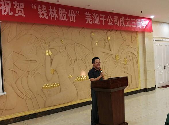 宴會(huì)伊始,北京南陵商會(huì)會(huì)長萬明先生對(duì)“錢林股份”蕪湖子公司成立三周年發(fā)表致辭,萬會(huì)長就蕪湖子公司在南陵的發(fā)展做出的重要貢獻(xiàn)給予肯定,并對(duì)于子公司未來的發(fā)展寄于厚望,希望蕪湖子公司能夠不忘初心,穩(wěn)扎穩(wěn)打,以更好的產(chǎn)品回饋社會(huì)。