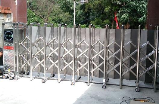 衢州電動(dòng)伸縮門就是門體可以伸縮自由移動(dòng),來控制門洞大小、來控制行人或車輛的攔截和放行的一種門。電動(dòng)伸縮門主要由門體、驅(qū)動(dòng)電機(jī),滑道、控制系統(tǒng)構(gòu)成。門體采用優(yōu)質(zhì)不銹鋼及鋁合金專用型材制作,采用平行四邊形原理鉸接,伸縮靈活行程大。驅(qū)動(dòng)器采用特種電機(jī)驅(qū)動(dòng),蝸桿蝸輪減速,并設(shè)有自動(dòng)離合或手動(dòng)離合器,自動(dòng)離合停電時(shí)可自動(dòng)啟閉,手動(dòng)離合停電時(shí)可手動(dòng)啟閉,控制系統(tǒng)有控制板,按鈕開關(guān),另可根據(jù)需求配備無線遙控裝置。