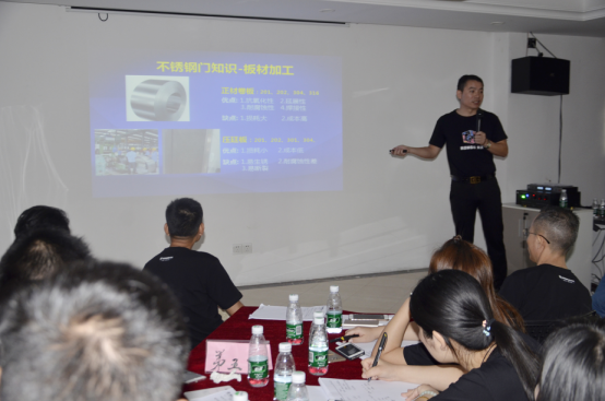 李總從產(chǎn)品的選材、工藝技能開始培訓(xùn),入戶門的每一個知識細(xì)節(jié)講述可謂入木三分。細(xì)致的知識鋪排專業(yè)性強(qiáng),但又通俗易懂。課堂氣氛群情激昂,學(xué)員興奮不已,開心學(xué)習(xí),快樂成長。