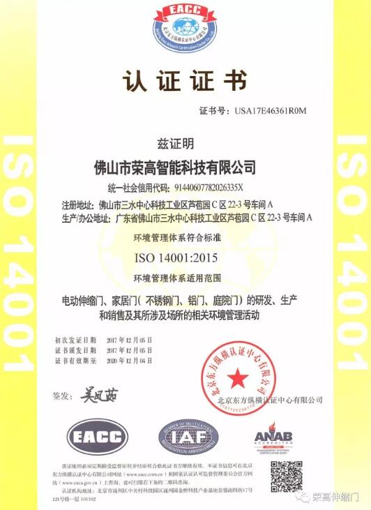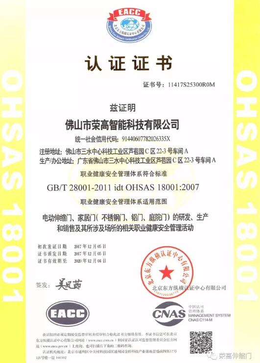 品質(zhì)的強化管理是榮高智能門窗獲得認證證書的根本要素。我們將不斷提高公司質(zhì)量和環(huán)境、職業(yè)健康安全管理水平,為公司提供管理保障。