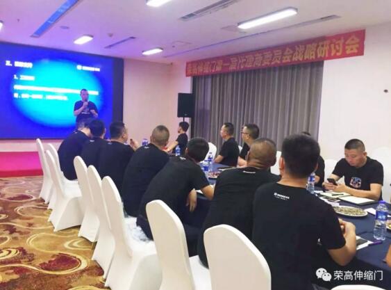 榮高伸縮門首屆代理商委員會(huì)戰(zhàn)略研討會(huì)于成都熱烈召開,榮高智能門窗董事長黃榮高先生,總經(jīng)理黃榮志先生,代理商委員會(huì)會(huì)長楊永先生、代理商委員等近20人出席研討會(huì)議。