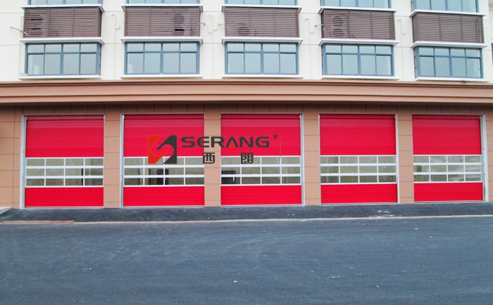 消防快速提升門的顏色是中國(guó)紅與火焰藍(lán)兩種進(jìn)行配比,比例一般是上紅:下藍(lán)=2:1,作為消防聯(lián)動(dòng)用的快速提升門一般無(wú)需開小門的要求,但是需要配多個(gè)或多排視窗,有些消防大隊(duì)可能要求全透明的快速提升門作為消防車庫(kù)門。