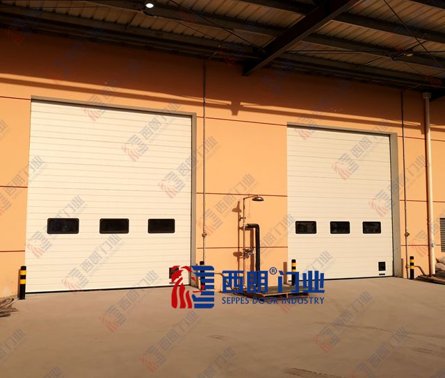 3、鋼制門板:防爆提升門門板采用雙面0.4毫米的鍍鋅彩鋼板,夾層是高密度保溫發(fā)泡,兩者緊密結(jié)合。厚度達40毫米,門板表面有橘皮壓紋面,如需要采光效果和關(guān)閉時有人員通行要求,可增加采光窗和門中門。