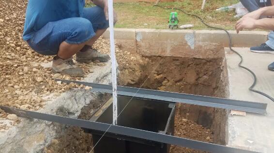使用水平儀、水平線,確保地基盒中心對齊、與地面水平對齊。