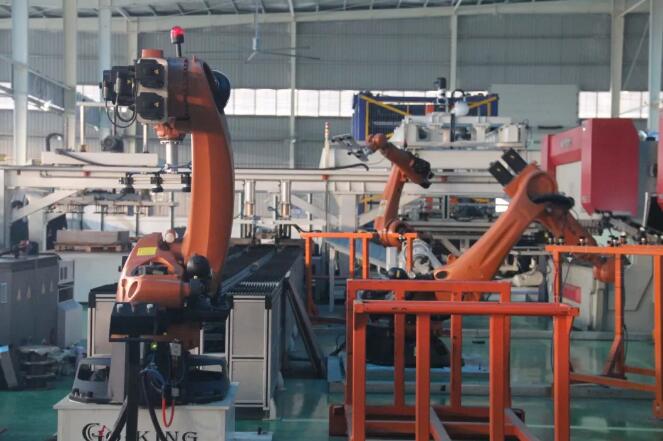 嘉賓重點(diǎn)參觀了“鈑金柔性生產(chǎn)線”、“智能加工中心”、“機(jī)器人焊接工作站“等智能化生產(chǎn)線,欣賞機(jī)器人協(xié)作完成的折彎、堆垛、焊接等一系列動(dòng)作。