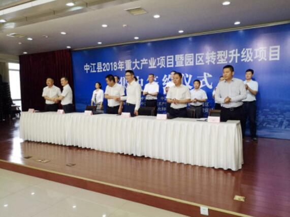 2018年5月8日上午,帝航集團與成德工業(yè)園區(qū)舉行“2018重大產(chǎn)業(yè)項目暨園區(qū)轉(zhuǎn)型升級項目集中簽約儀式”。帝航集團總裁彭操坪、中江縣縣委書記蘇剛、中江縣縣長李霞等領(lǐng)導共同出席了此次簽約儀式。
