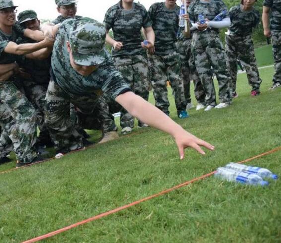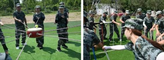 團(tuán)隊越障,整個團(tuán)隊全體隊員,在只能借助隊友身體的情況下,在盡可能短的時間內(nèi),全部翻越過面前的這一根繩子,一旦觸碰繩子,所有通過的隊員全部重來。在極其苛刻的規(guī)則下,大家迅速開展討論,并制訂出一套可行的方法。反復(fù)嘗試,失敗,重來,再失敗,再重來。