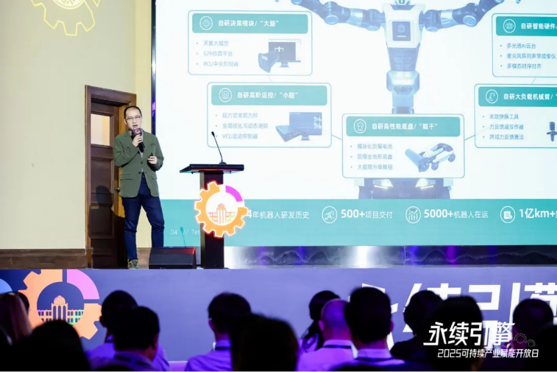 作為具身智能產(chǎn)業(yè)創(chuàng)新力量的代表,天創(chuàng)機(jī)器人集團(tuán)天機(jī)智能團(tuán)隊(duì)受邀參會,并在產(chǎn)業(yè)賦能主論壇上做主題演講,與現(xiàn)場的嘉賓與合作伙伴們分享了公司關(guān)于具身智能技術(shù)長期探索的歷程與其產(chǎn)業(yè)應(yīng)用上的一系列思考。