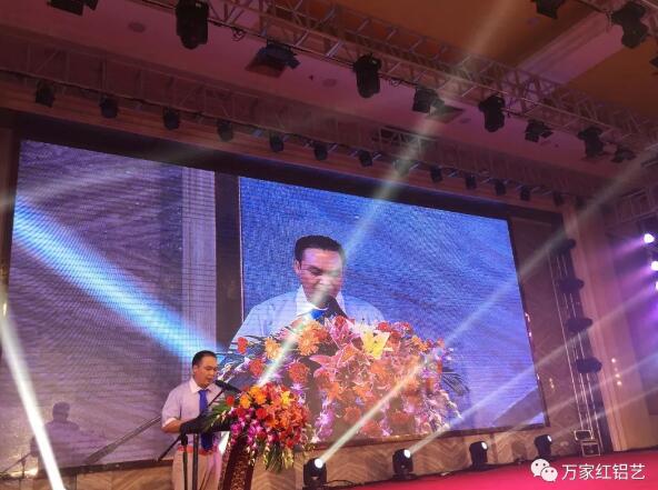 晚會(huì)由萬(wàn)家紅鋁藝董事長(zhǎng)廖財(cái)萬(wàn)致詞拉開(kāi)了序幕: