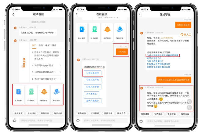 還有星友說,它變“聰明”了,“搜索區(qū)”“猜你想問”不僅可以關聯(lián)近期的充電訂單,還可以預判自己想問的問題。同時,通過客服中心頁進入“在線客服”聊天界面,按照功能區(qū)指引,點擊對應問題,或直接輸入關鍵詞發(fā)送至對話框,即可立即得到相關解決辦法。