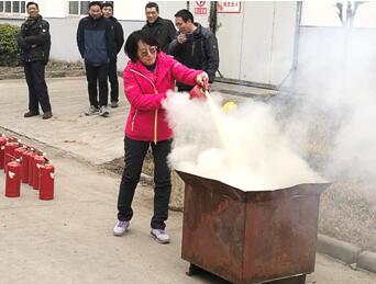 在學習了滅火器的操作后,員工參加了滅火器使用的實戰(zhàn)演練,將鐵桶中熊熊燃燒的大火撲滅。