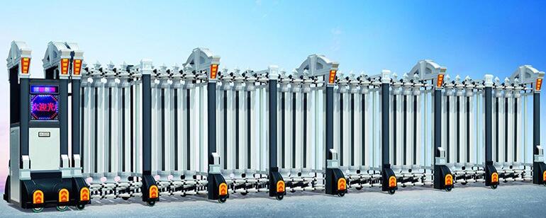 西安伸縮門就是門體可以伸縮自由移動(dòng),來(lái)控制門洞大小、來(lái)控制行人或車輛的攔截和放行的一種門。伸縮門主要由門體、驅(qū)動(dòng)電機(jī),滑道、控制系統(tǒng)構(gòu)成。門體采用優(yōu)質(zhì)不銹鋼及鋁合金專用型材制作,采用平行四邊形原理鉸接,伸縮靈活行程大。驅(qū)動(dòng)器采用特種電機(jī)驅(qū)動(dòng),蝸桿蝸輪減速,并設(shè)有自動(dòng)離合或手動(dòng)離合器,自動(dòng)離合停電時(shí)可自動(dòng)啟閉,手動(dòng)離合停電時(shí)可手動(dòng)啟閉,控制系統(tǒng)有控制板,按鈕開關(guān),另可根據(jù)需求配備無(wú)線遙控裝置。