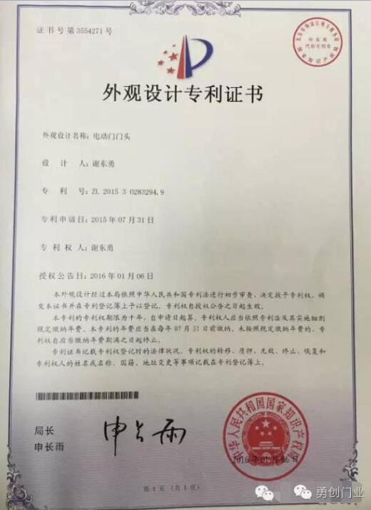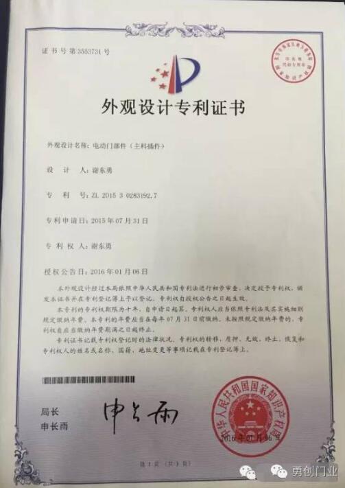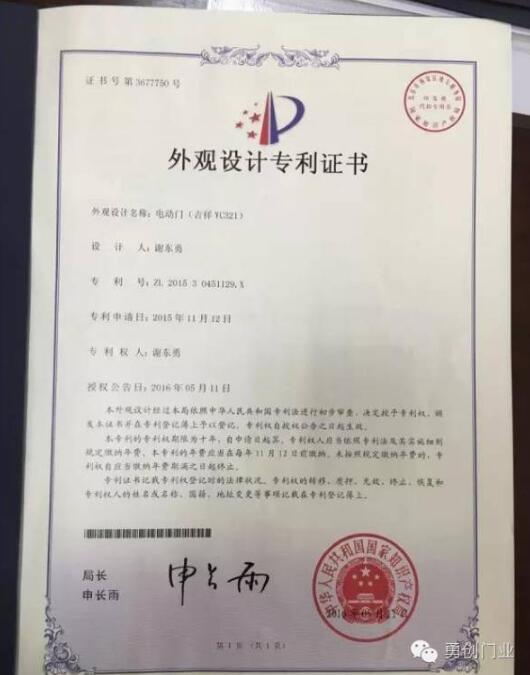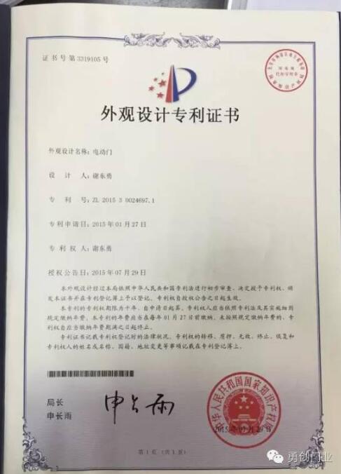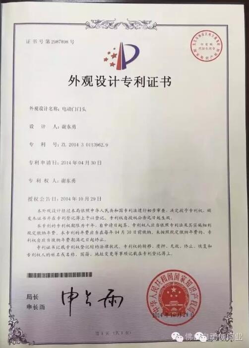 (產(chǎn)品專(zhuān)利證書(shū)之一)