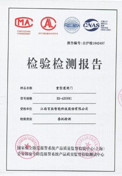 在公安三所的權(quán)威檢驗(yàn)下,百勝重型道閘門符合“GA/T 1132-2014《車輛出入口電動(dòng)欄桿機(jī)技術(shù)要求》及Q/BSZN 017-2018《重型道閘門企業(yè)標(biāo)準(zhǔn)》”要求。