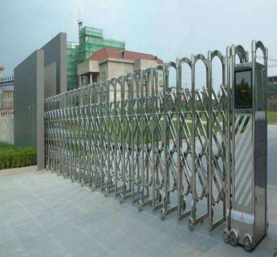 舟山電動伸縮門門體采用優(yōu)質(zhì)不銹鋼及鋁合金專用型材制作,采用平行四邊形原理鉸接,伸縮靈活行程大,給藍(lán)綠和園項(xiàng)目不一樣的體驗(yàn)。