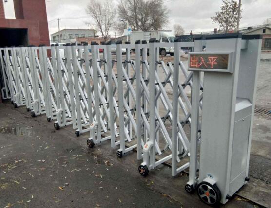3、遇障礙自停返回:門運行前部裝有微電腦紅外線探頭,在關門運行時遇到障礙物或行人距門20CM-30CM伸縮門可自動停止并返回,從而保障行人及車輛的安全;手動電動轉換裝置:門在停電或有故障時將轉換鑰匙逆轉90度,即由電動轉為手動。伸縮門不僅可以美化環(huán)境、改善企業(yè)面貌、提升企業(yè)形象。更有助于打造文明企業(yè)、文明工廠、文明城市氛圍;更加有利于營造更好的環(huán)境氛圍。
