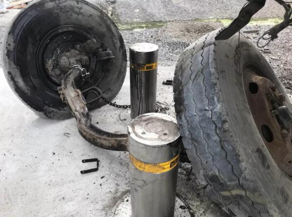 經(jīng)過猛烈碰撞后,百勝BS602升降地柱外觀無明顯變形,且能正常升降,表現(xiàn)優(yōu)異!