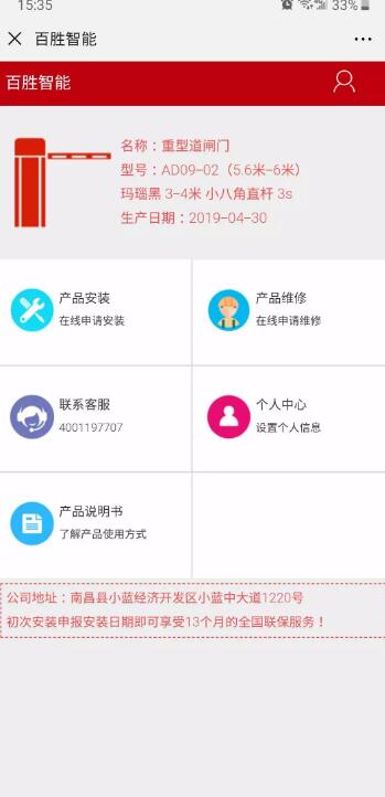 自2019年5月1日起,百勝生產(chǎn)的道閘門(mén)、廣告道閘、車(chē)牌識(shí)別一體機(jī)、自動(dòng)升降地柱等產(chǎn)品上將應(yīng)用產(chǎn)品二維碼。